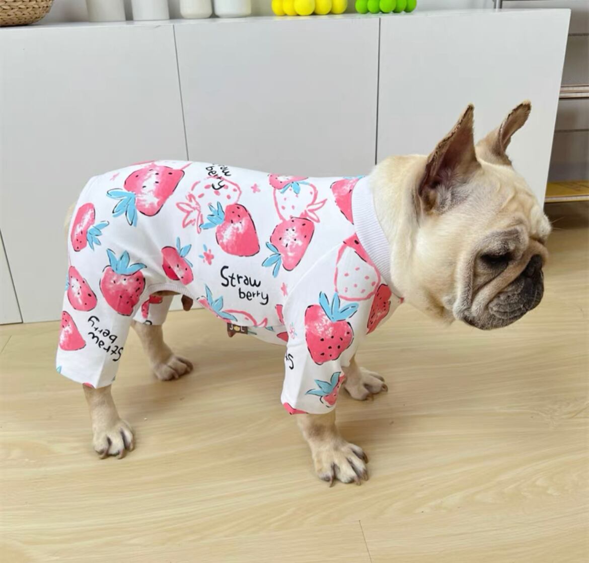 【予約】イチゴちゃんサロペット 犬服 フレンチブルドッグ パグ